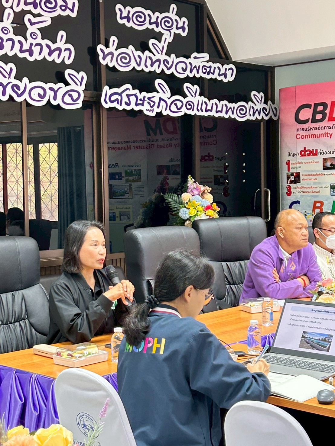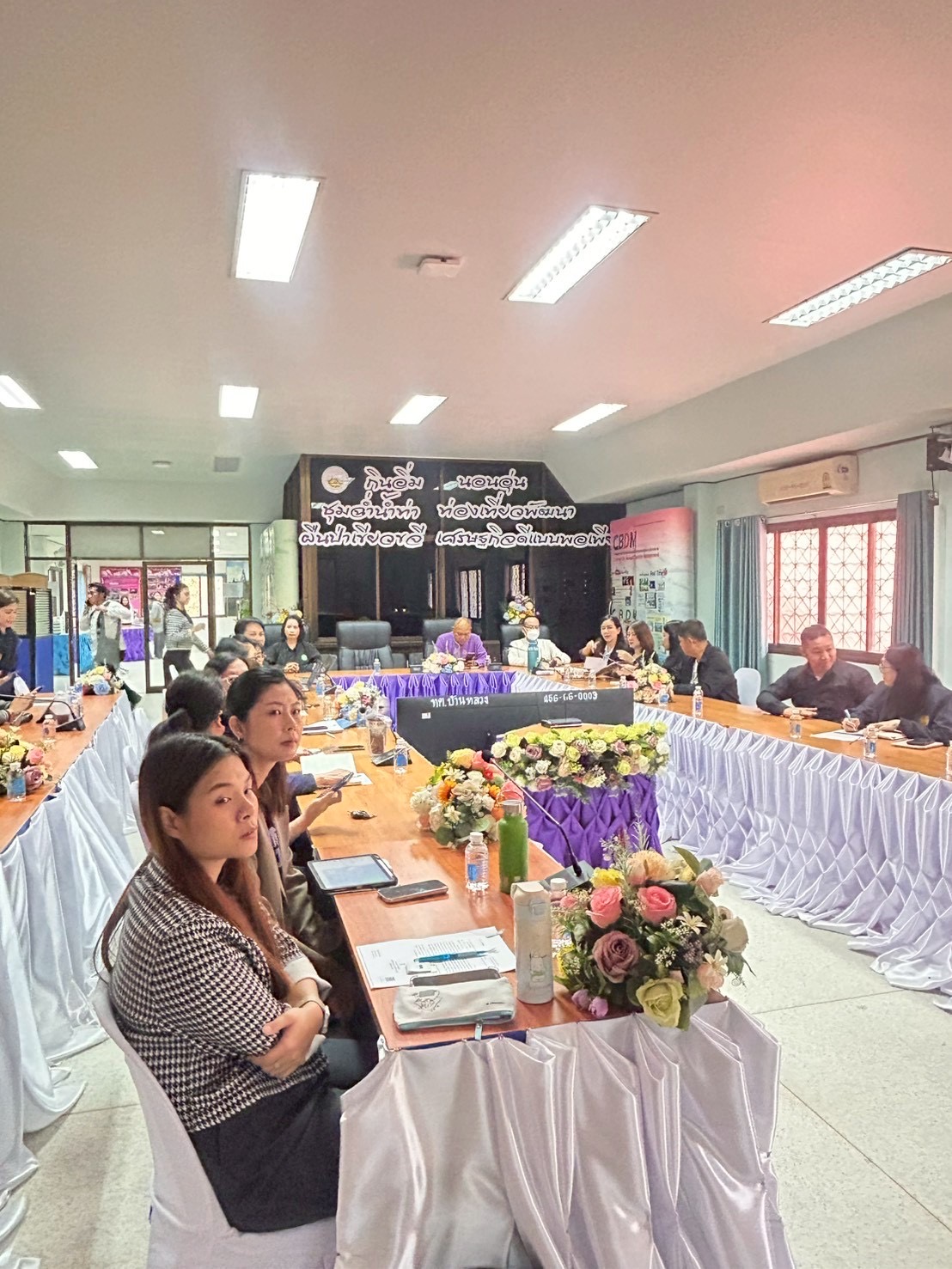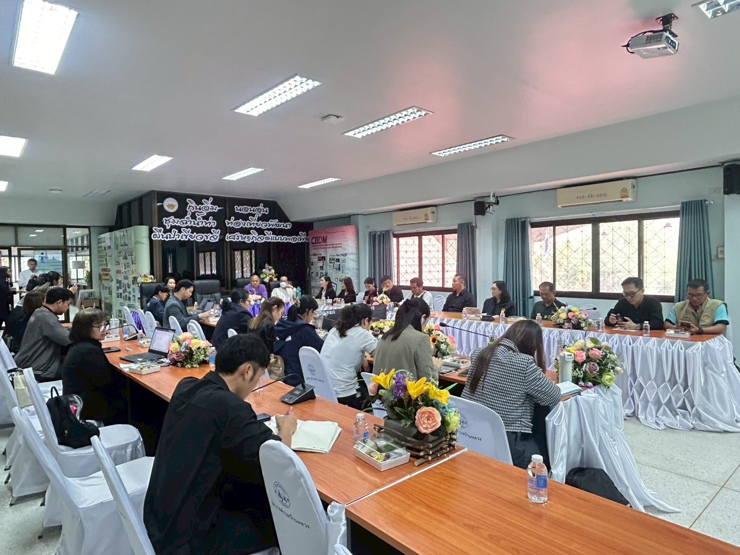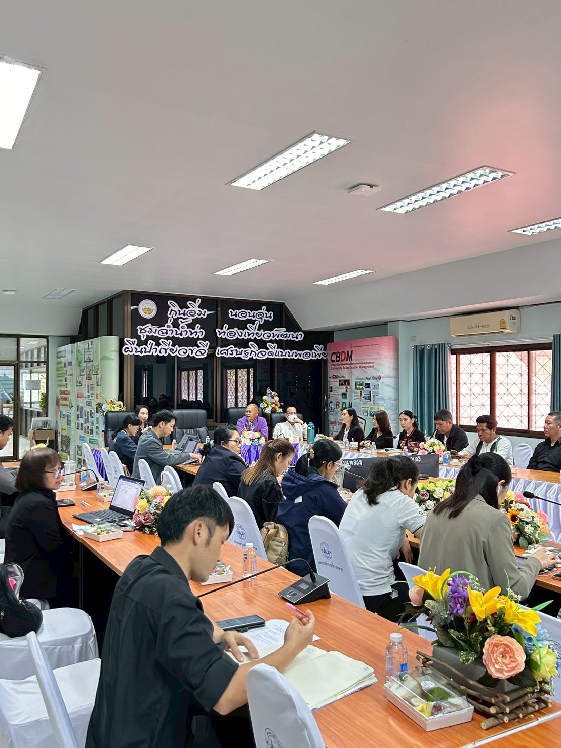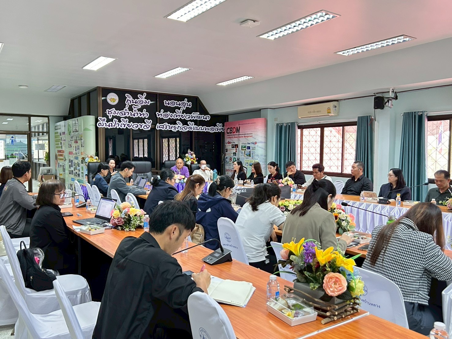 ผู้เข้าร่วมประชุมประกอบด้วยหน่วยงานภาคีเครือข่าย ได้แก่ ศูนย์อนามัยที่ 1 เชียงใหม่ สำนักงานสิ่งแวดล้อมและควบคุมมลพิษที่ 1 เชียงใหม่ สำนักงานทรัพยากรธรรมชาติและสิ่งแวดล้อมจังหวัดเชียงใหม่ สำนักงานขนส่งจังหวัดเชียงใหม่ สำนักงานโยธาธิการและผังเมืองจังหวัดเชียงใหม่ สำนักงานที่ดินจังหวัดเชียงใหม่ สาขาจอมทอง คณะสาธารณสุขศาสตร์ มหาวิทยาลัยเชียงใหม่ สำนักงานสาธารณสุขอำเภอจอมทอง โรงพยาบาลส่งเสริมสุขภาพตำบลดอยอินทนนท์ โรงพยาบาลส่งเสริมสุขภาพตำบลบ้านเมืองกลาง โรงพยาบาลส่งเสริมสุขภาพตำบลบ้านใหม่ห้วยเฮี๊ยะ โรงพยาบาลส่งเสริมสุขภาพตำบลแม่หอย ผู้บริหารและเจ้าหน้าที่เทศบาลตำบลบ้านหลวง รวม 30 คน