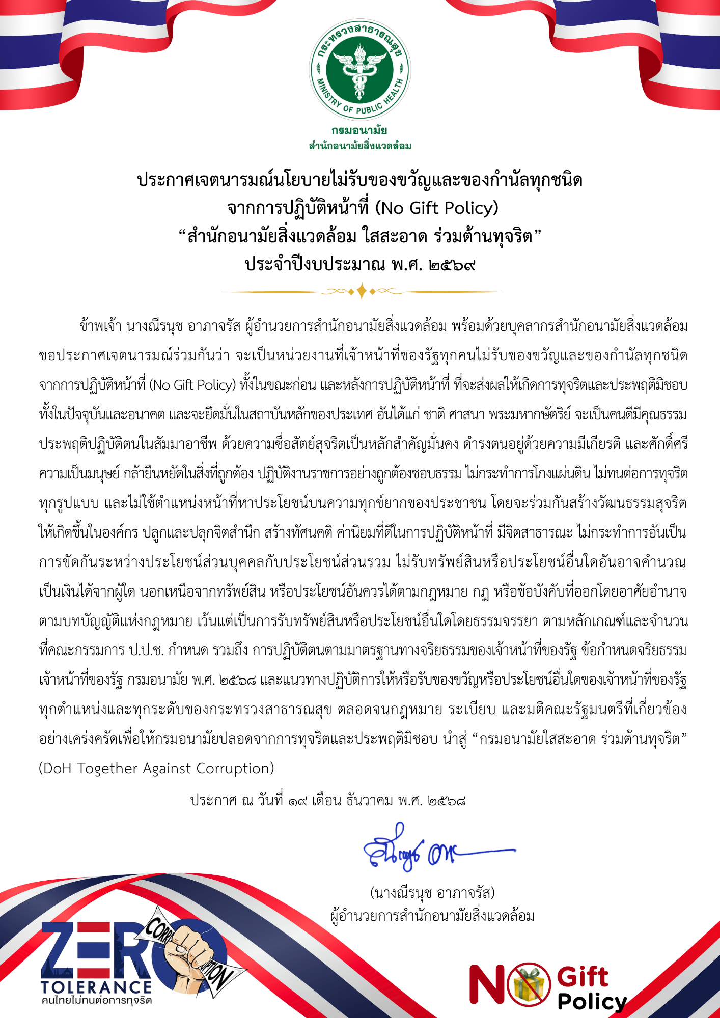 1.3 ประกาศเจตนารมณ์การป้องกันและแก้ไขปัญหาการล่วงละเมิดหรือคุกคามทางเพศในการทำงาน