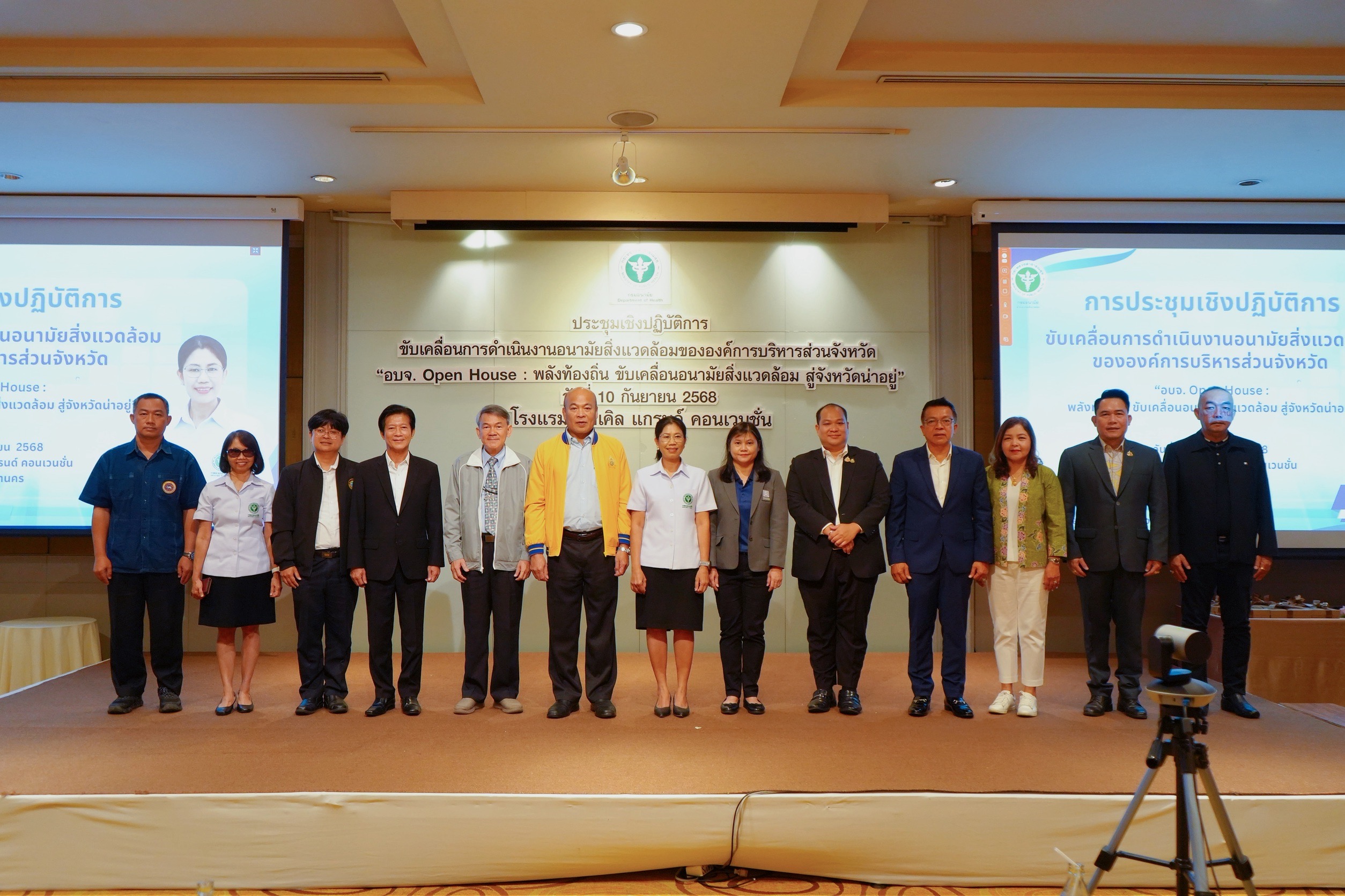 วันที่ 10 กันยายน 2568 สำนักอนามัยสิ่งแวดล้อม จัดประชุมเชิงปฏิบัติการขับเคลื่อนการดำเนินงานอนามัยสิ่งแวดล้อมขององค์การบริหารส่วนจังหวัด ณ โรงแรมมิราเคิล แกรนด์ คอนเวนชั่น กรุงเทพมหานคร โดยนายแพทย์ธิติ แสวงธรรม รองอธิบดีกรมอนามัย มอบหมายให้ นางณีรนุช อาภาจรัส ผู้อำนวยการสำนักอนามัยสิ่งแวดล้อม เป็นประธานการประชุม ผู้เข้าร่วมประชุมประกอบด้วย องค์การบริหารส่วนจังหวัด กรมส่งเสริมการปกครองท้องถิ่น สมาคมองค์การบริหารส่วนจังหวัดแห่งประเทศไทย สำนักงานสาธารณสุขจังหวัด กรมอนามัยทั้งส่วนกลางและส่วนภูมิภาค และหน่วยงานภาคีเครือข่ายที่เกี่ยว รวมทั้งสิ้น 114 คน