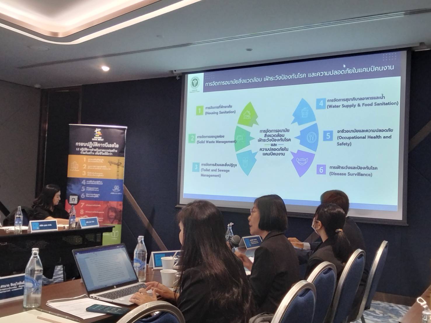 2. หัวข้อ “แนวทางการตรวจประเมินด้านอนามัยสิ่งแวดล้อมในสถานที่พักชั่วคราว (แคมป์คนงาน)” โดย นางสาวปรียนิตย์ ใหม่เจริญศรี รองผู้อำนวยการสำนักอนามัยสิ่งแวดล้อม กรมอนามัย