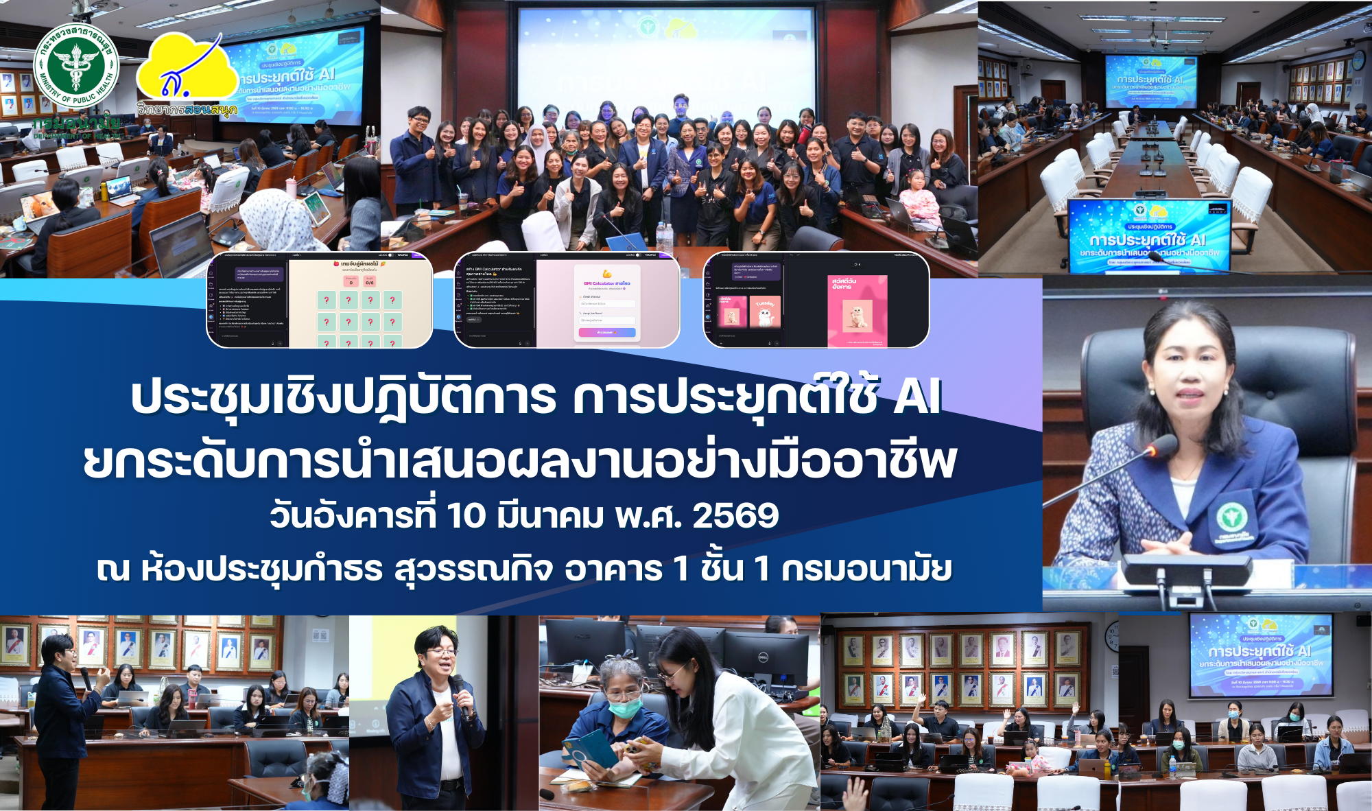นอังคารที่ 10 มีนาคม 2569 สำนักอนามัยสิ่งแวดล้อม จัดประชุมเชิงปฏิบัติการการประยุกต์ใช้ AI ยกระดับการนำเสนอผลงานอย่างมืออาชีพ ณ ห้องประชุมกำธร สุวรรณกิจ กรมอนามัย