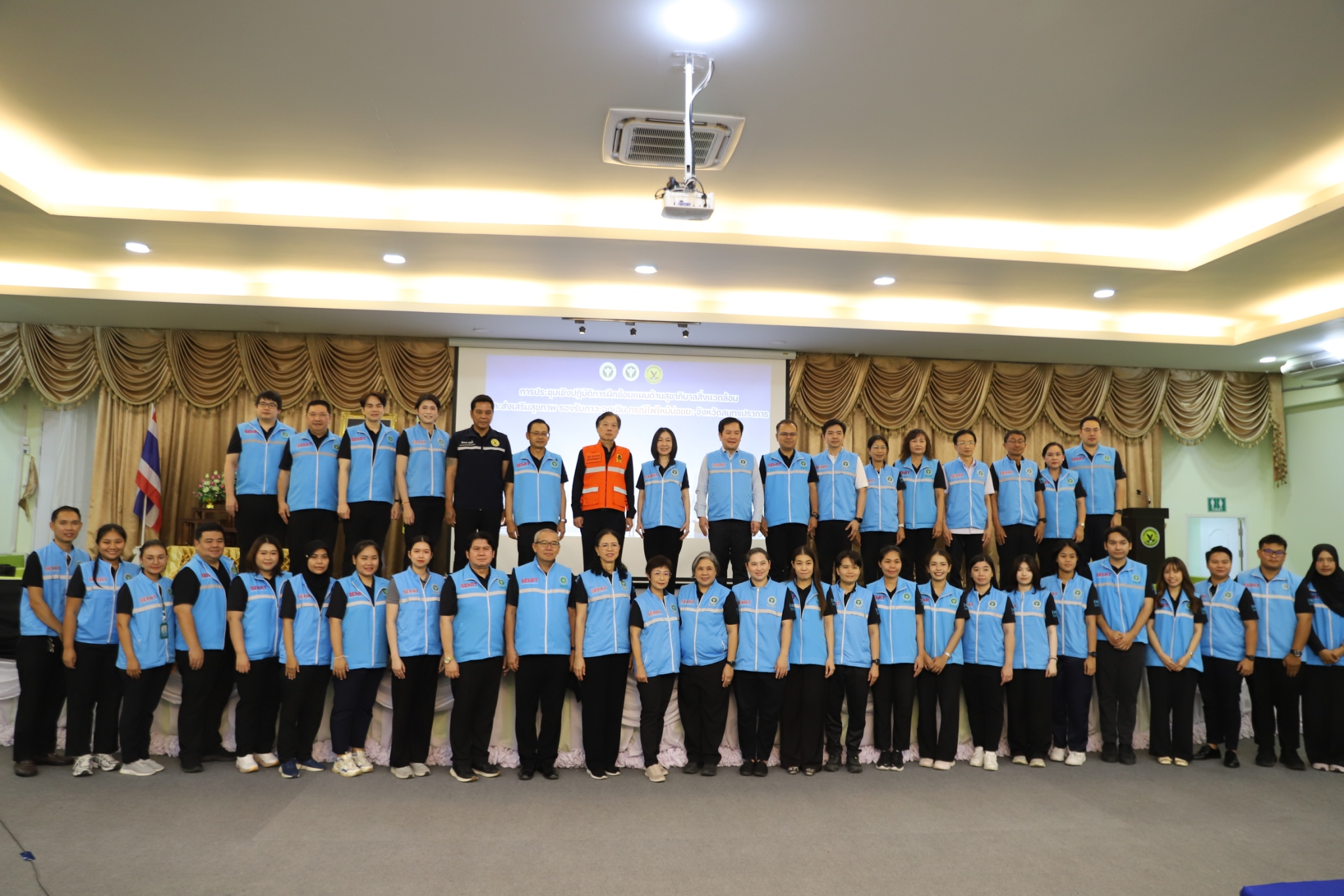 วันที่ 7 เมษายน 2569 สำนักอนามัยสิ่งแวดล้อม กรมอนามัย โดยนางณีรนุช อาภาจรัส ผู้อำนวยการสำนักอนามัยสิ่งแวดล้อม พร้อมด้วยนักวิชาการสำนักอนามัยสิ่งแวดล้อม เข้าร่วมการประชุมเชิงปฏิบัติการฝึกซ้อมแผนด้านสุขาภิบาลสิ่งแวดล้อมและส่งเสริมสุขภาพ รองรับภาวะฉุกเฉิน กรณีไฟไหม้บ่อขยะ ณ เทศบาลเมืองแพรกษาใหม่ อำเภอเมืองสมุทรปราการ จังหวัดสมุทรปราการ